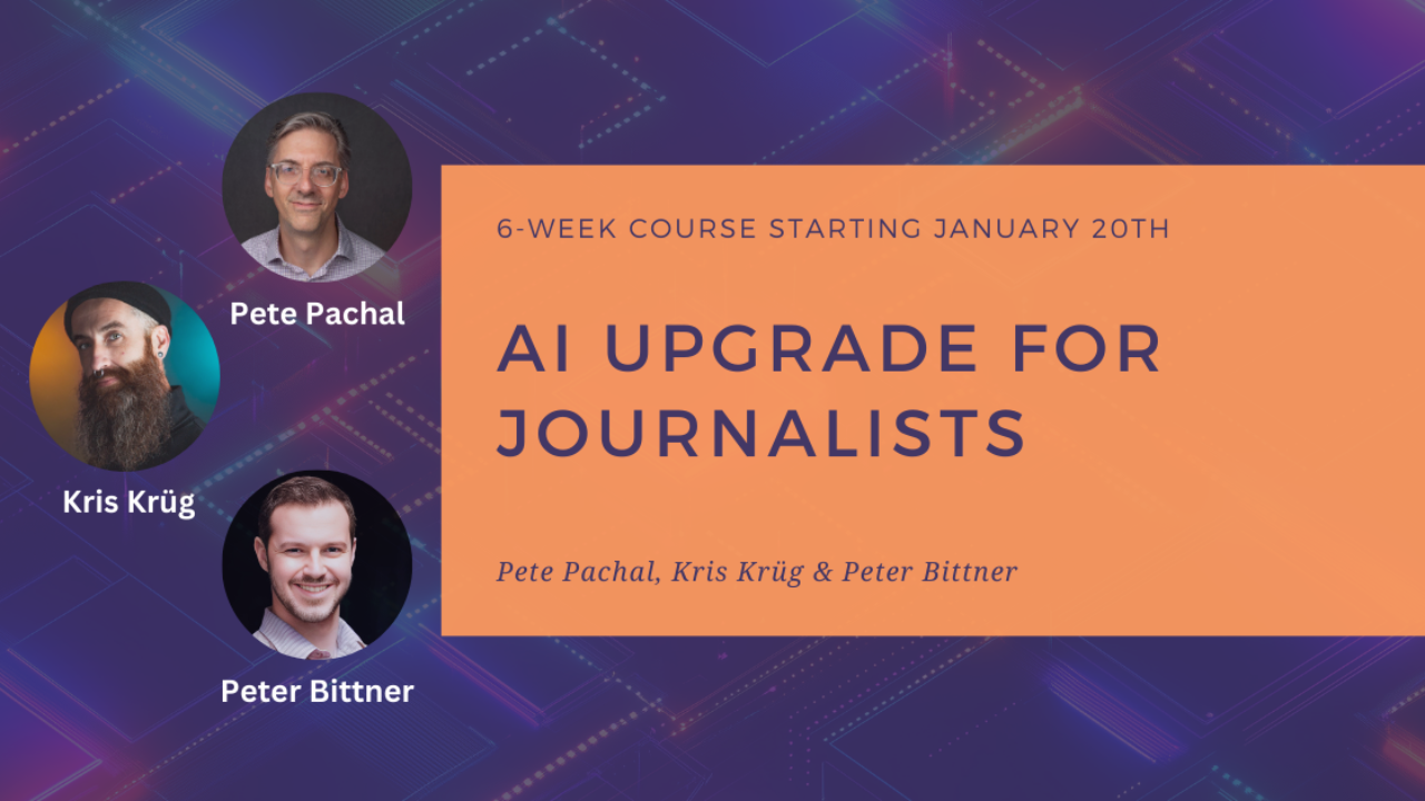 This 6-week certification course is designed to teach journalists how to leverage AI tools to enhance their reporting strategies, streamline workflows, and serve their audiences. The course will focus on practical applications of AI in research, analysis, writing, and social media. Led by award-winning journalists and AI experts Pete Pachal, Kris Krüg, and Peter Bittner, this course blends live demos, hands-on workflows, and personalized coaching to help future-proof your reporting.
